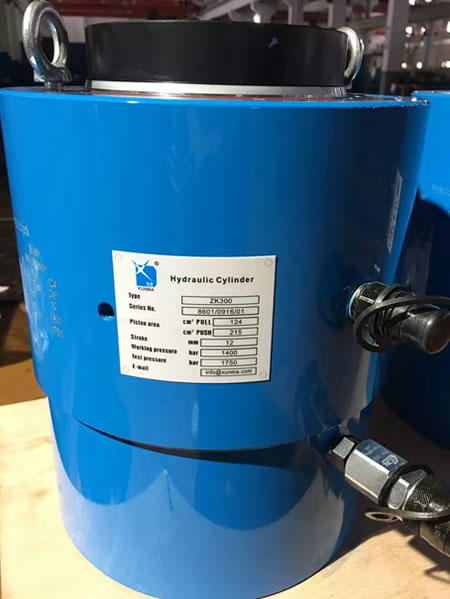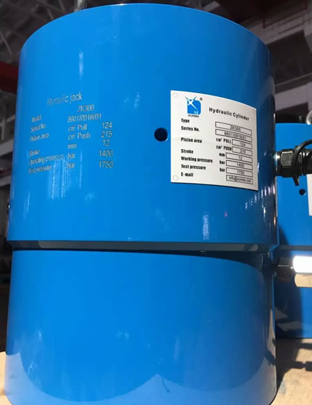 高压千斤顶的优势在于能在有限狭小空间内提供较大的推拉力,该千斤顶采用高强度合金材料制造,工作压力为140Mpa,出厂测试压力180Mpa,推力为300吨。